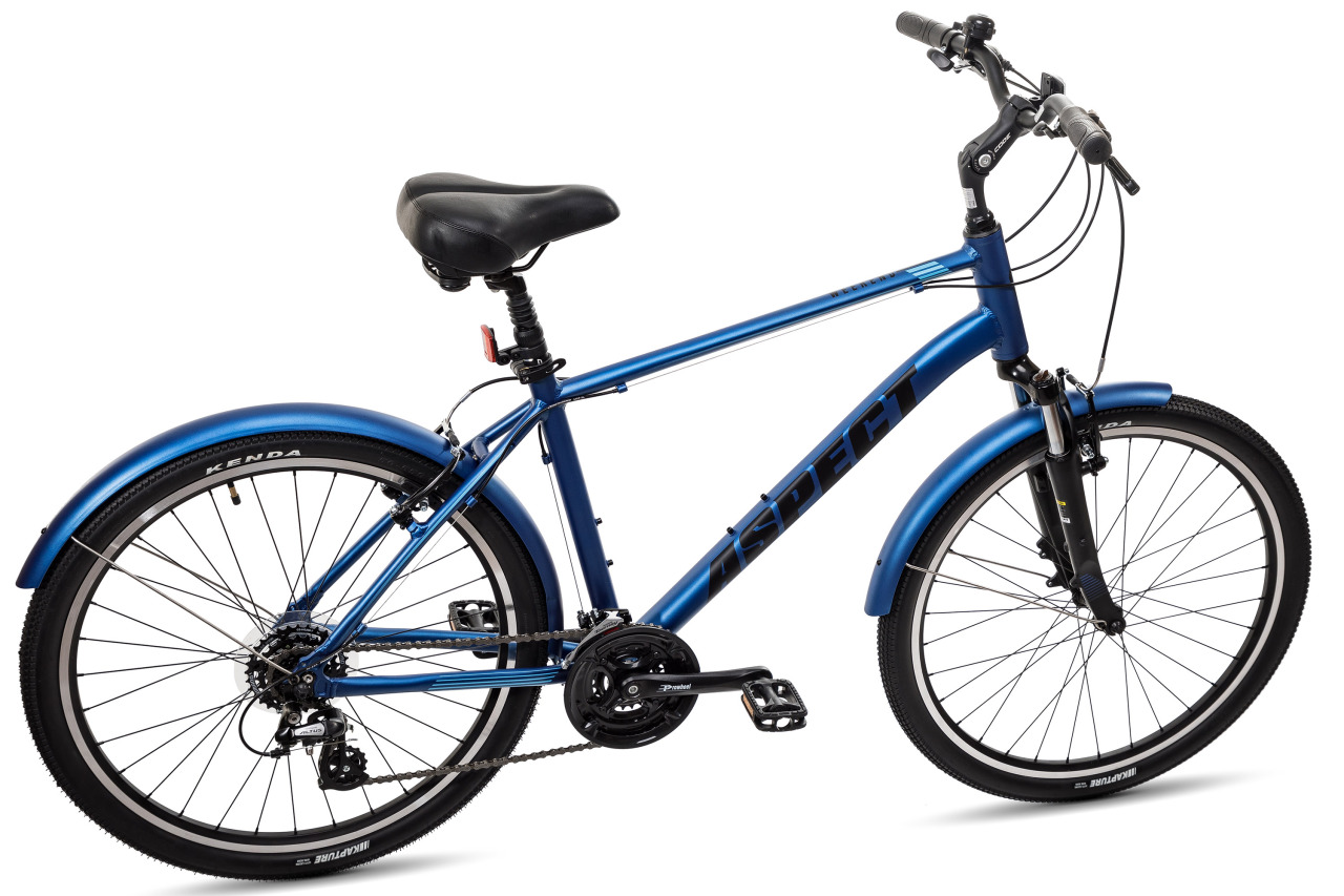 Aspect Weekend - комфортный байк выходной дня с предсказуемым поведением и хорошим потенциалом. Данная модель, определенно точно, придется по вкусу тем, кто ищет надежность и адаптивность для спокойного и размеренного катания по смешанным маршрутам города. Байк, при своей внешней простоте, обладает высокой продуманность в мелочах: Рама из алюминия 6061 с формированными трубами и литым дропаутом; Геометрия под комфортную, слегка наклоненную к рулю посадку; Прочные и маневренные 26" колеса на двойных ободах и алюминиевых втулках под кассету; Комбинация трансмиссии Shimano с оптимальным диапазоном скоростей для легкого подъема в горку и скоростного движения в городе; Мягкое и комфортное, широкое седло; Комфортный руль с небольшим подъемом и загибом в велосипедисту, регулируемый по высоте и наклону вынос руля; Амортизирующий подседельный штырь и передняя мягкая вилка.