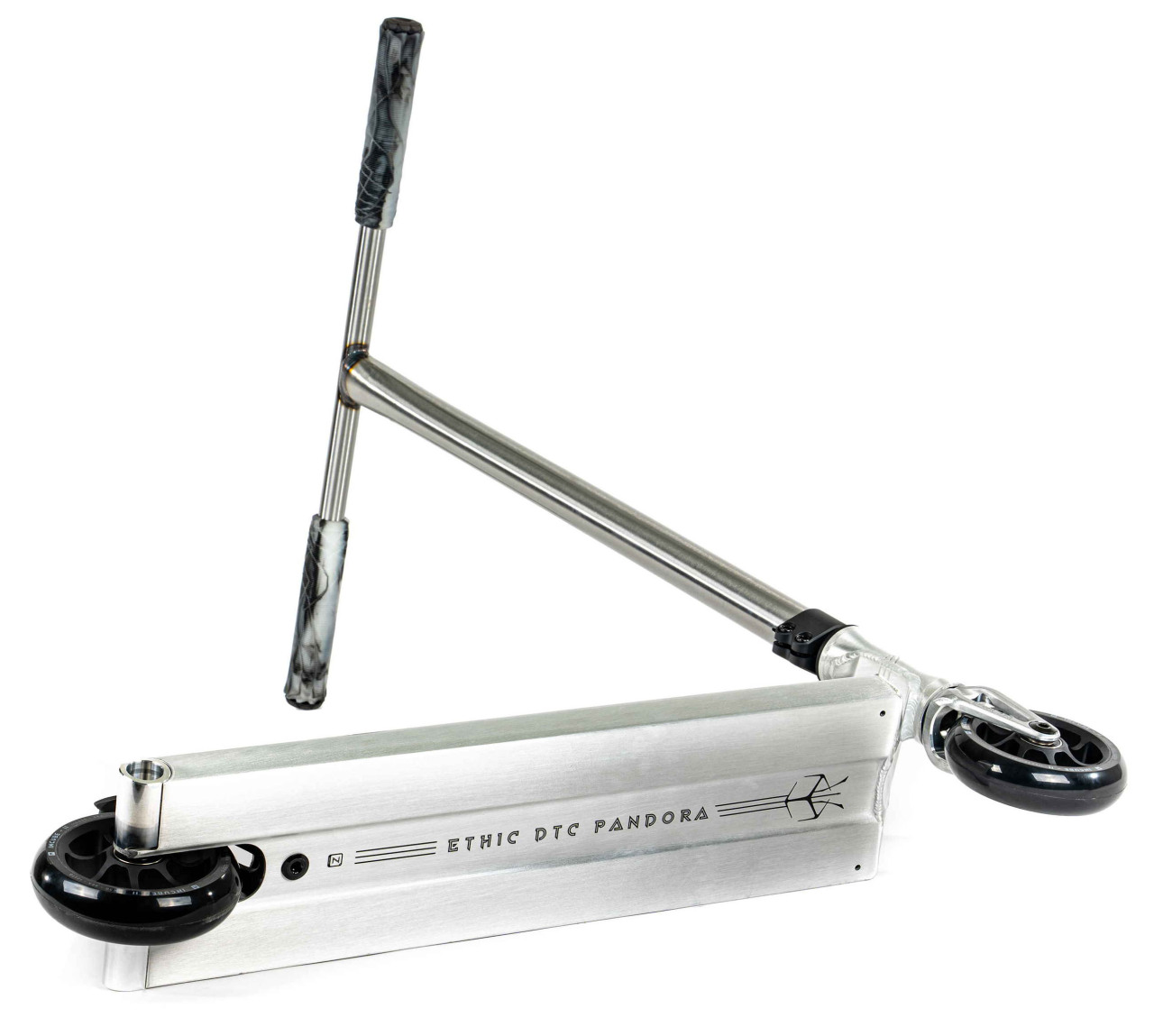 Ethic Pandora 2025 – один из самых технологичных самокатов в линейке Ethic, на базе одноименной деки Pandora, завоевавшей популярность и востребованность среди многих райдеров. Данный самокат собран на фирменных запчастях Ethic, среди которых HIC-версия вилки Legion, выполненная из алюминиевого сплава 7075 с увеличенным штоком и поддержкой стандарта оси 12 мм, которым может похвастаться далеко не каждая вилка для трюкового самоката, а также колесами Ethic Incube, имеющими увеличенный диаметр и ширину для большей стабильности в катании.
