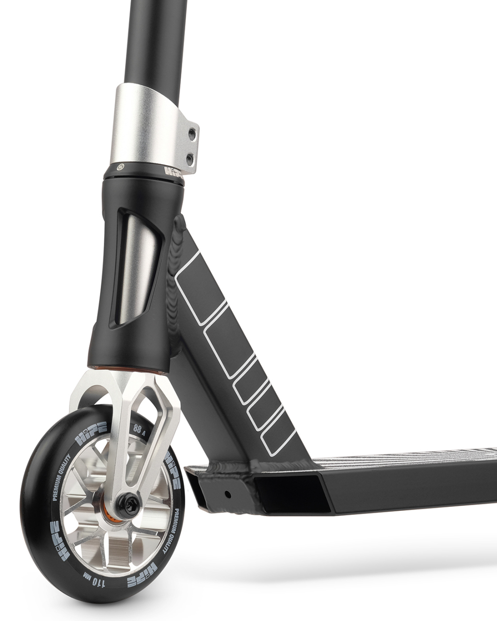 Hipe H10 — продвинутая модель паркового самоката в линейке трюковых самокатов от бренда HIPE. Самокат обладает достаточно небольшими габаритами, что делает его доступным для райдеров со средним ростом, а Y-образный руль из стали Cr-Mo прибавляет надежности в эксплуатации. Данный самокат обладает IHC-компрессией, которая хорошо переносит нагрузки при парковом катании, при этом надежно фиксируя руль, и имея более низкий вес в сравнении с компрессией стандарта SСS.