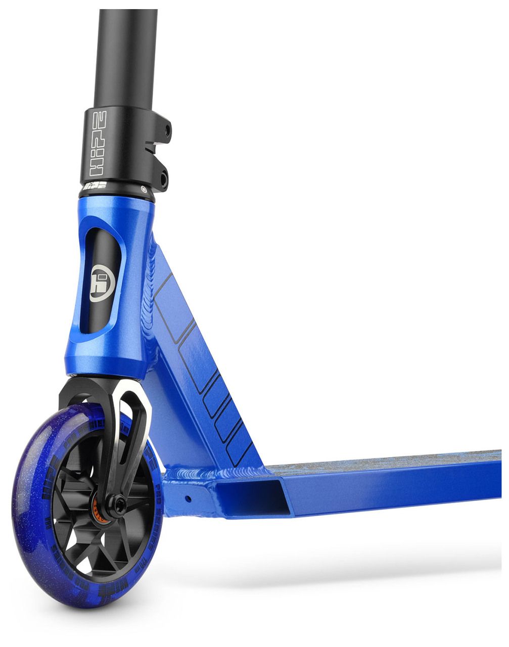 Руль самоката имеет Y-образную форму и выполнен из Cr-Mo стали - материала легкого, достаточно прочного. и устойчивого к коррозии. Дека выполнена из алюминия, сплава 7005 Т6. Стоит заметить, что в данной модели профиль деки не идеально плоский, а имеет небольшие изгибы по бокам, что действительно важно для комфортного приземления и выполнения трюков.