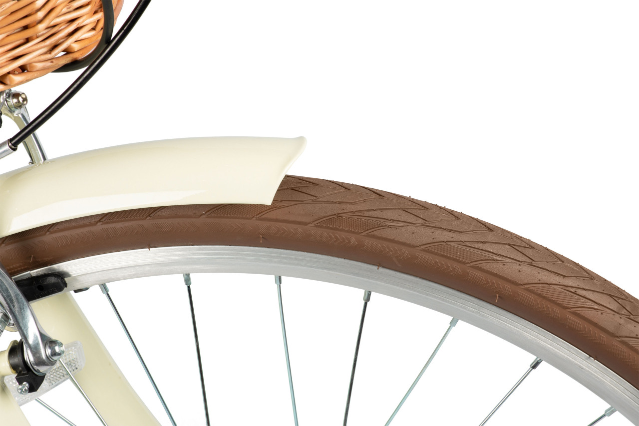 Внимания заслуживает и ведущая звезда на 44 зуба, что будет более комфортным решением в отличие от систем с двумя или тремя ведущими звездами, где будет требоваться настройка переключателя, и навык подбора правильного соотношения передач. Велосипед также имеет защиту цепи и полноразмерные крылья в комплекте, что позволит сохранить в чистоте не только сам узел трансмиссии, а и велосипедиста при катании в дождливую погоду. Этот велосипед будет отличным выбором для девушек ростом от 165 до 185 сантиметров.