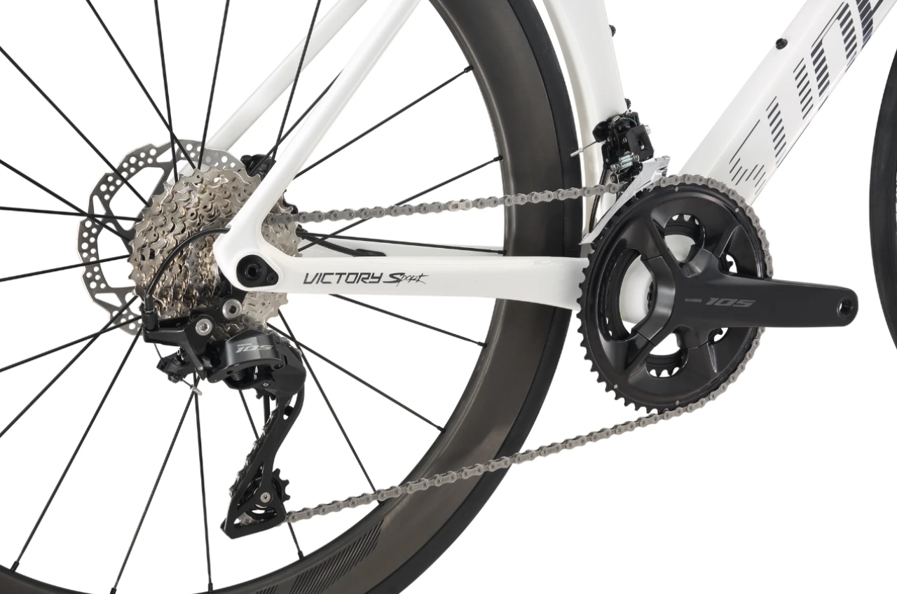 Sunpeed Victory Sport (2024) — это высокопроизводительный шоссейный велосипед, созданный для тех, кто стремится к скорости и эффективности на дороге. Этот велосипед идеально подходит как для опытных райдеров, так и для начинающих спортсменов, желающих улучшить свои результаты и наслаждаться каждой поездкой. Рама SUNPEED VICTORY SPORT High-modulus Carbon Frame 700C выполнена из легкого карбона, что обеспечивает оптимальное соотношение прочности и веса. Аэродинамическая геометрия рамы способствует минимизации сопротивления воздуха, позволяя вам достигать высоких скоростей с меньшими усилиями. Велосипед оснащен высококачественной трансмиссией Shimano 105 DI2 с широким диапазоном передач, что позволяет легко справляться с различными уклонами и поддерживать оптимальный темп на ровных участках. Плавное и точное переключение передач гарантирует надежность во время гонок и тренировок. Легкие и прочные колеса, оборудованные узкими шинами SPORTILL 700CX25C F/V, обеспечивают отличное сцепление с дорогой и минимальное сопротивление качению. Sunpeed Victory Sport — это идеальный выбор для тех, кто хочет достичь новых высот в шоссейных гонках или просто насладиться быстрой и комфортной ездой по асфальтированным дорогам.
