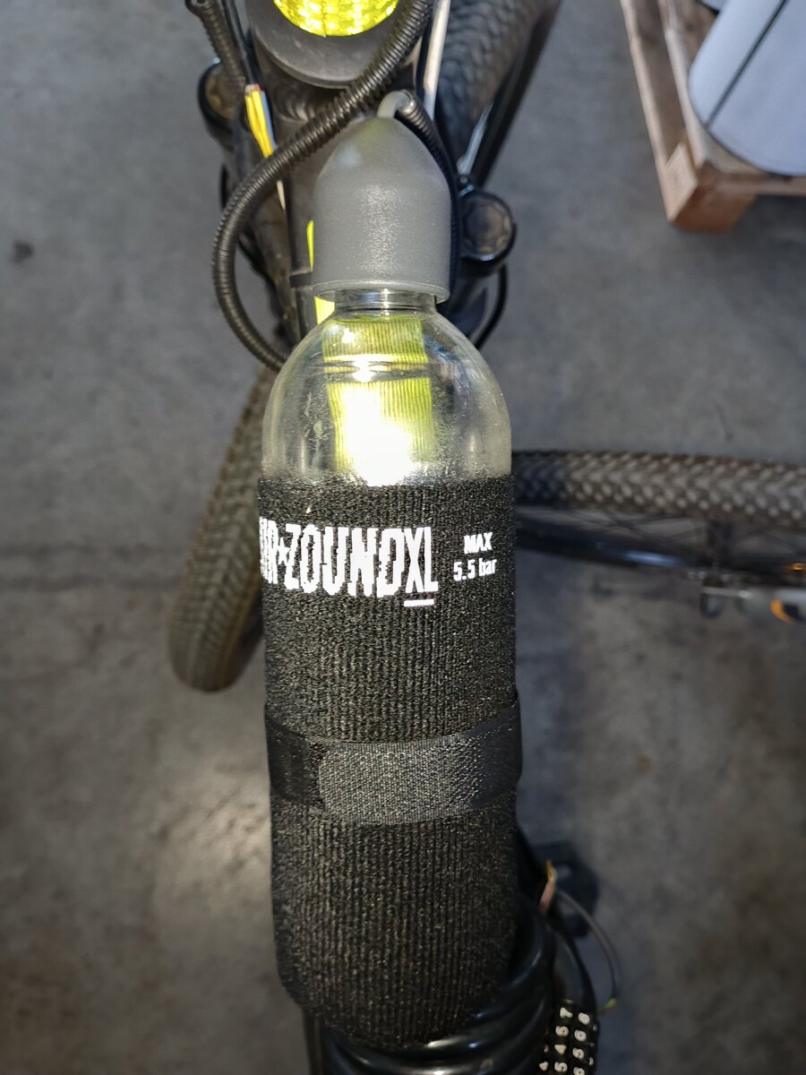 Клаксон Air Zound издает гудок громкостью в 120 Дб, и даже самый невнимательный водитель услышит его. Клаксон крепится на руле, а воздушный резервуар — на флягодержателе. Перезаряжается при помощи любого стандартного воздушного насоса: велосипедного, автомобильного, электрического, также можно воспользоваться воздухом высокого давления на станции подкачки шин на любой автозаправке. Полностью пожаробезопасен! Не наносит вреда окружающей среде! Может перевозиться авиатранспортом (в ненакачанном виде). По громкости звука не уступает горнам с одноразовыми газовыми баллончиками. Одного запаса воздуха хватает примерно на 50 гудков. Работает на обычном воздухе!