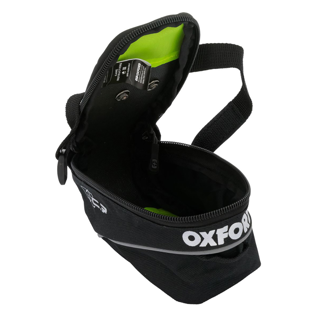 Подседельная сумка Oxford C.7, 0.7 л - универсальная и небольшая сумка для размещения необходимых вещей в пути. Молния влагозащищена, имеет удобный резиновый хлястик для использования в перчатках, дополнительно молнию поддерживает кольцевой стреп на липучке. Фиксируется на рейлы седла и подседельный штырь при помощи прочных и тонких стрепов на липучке. Подойдет для любого направления велосипедов. Корпус сумки выполнен из плотного и влагоустойчивого полиэстера 600D, имеет светоотражающий принт для пассивной безопасности. Сумка оборудована одним основным отсеком, в котором с удобством можно разместить ремонтные наборы или небольшие вещи: ключи от дома, шестигранники, монтажные лопатки, набор заплаток или запасную камеру.