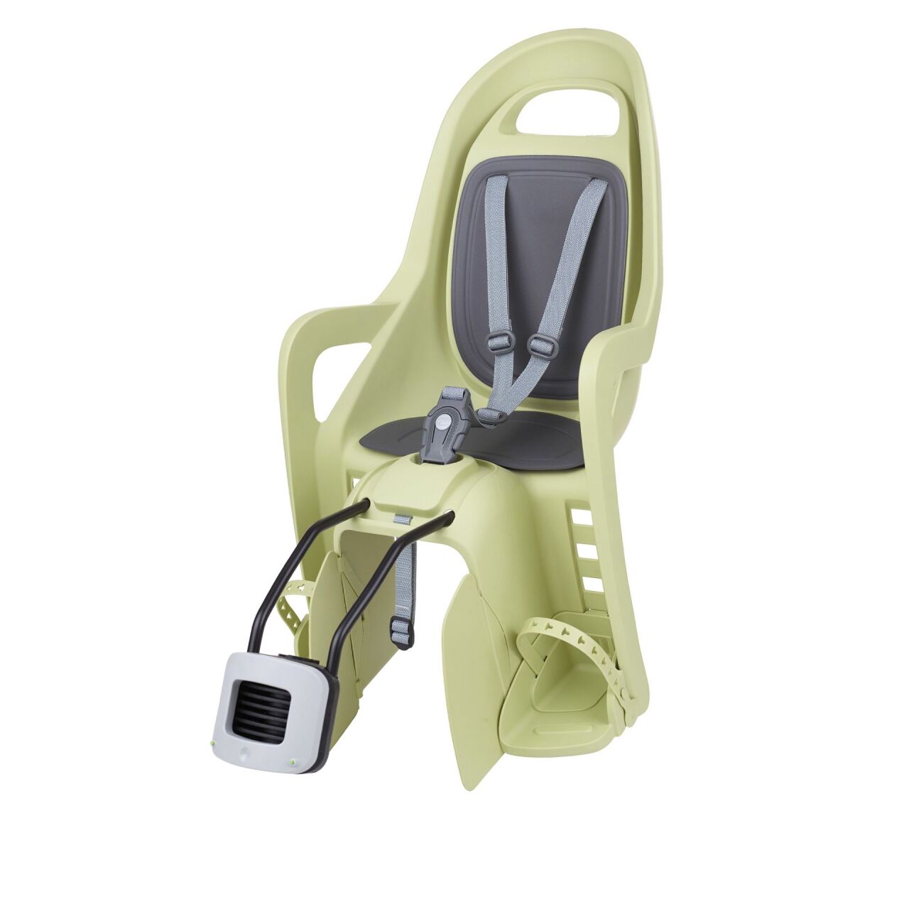 Groovy Maxi FF - легкое в использовании детское кресло от Polisport. Корпус кресла выполнен из прочного пластика и покрыт специальным мягким матрасиком. Он обеспечивает мягкую посадку, отличную амортизацию, приятные тактильные свойства, легкую мойку и влагоустойчивость. Вес кресла 3,66 кг. Трехточечный ремень мягко и надежно фиксирует ребенка по всему корпусу тела, мягкие вставки ремней не натрут и не нарушат комфорт посадки, а пряжка защищена от самопроизвольного расстегивания ребенка в пути. Подножки легко поддаются регулировке в 4 положениях под рост ребенка, допуск от 9 месяцев до 5 лет и весом до 22 кг. Встроенная металлическая планка позволяет менять высоту сиденья одной рукой. Фиксатор устанавливается на рулевой стакан рамы между верхней и нижней трубой рамы. Для безопасности движения советуем учесть к выбору шлем для ребенка, например MET Super Buddy. Кресло рассчитано на велосипеды с размером колес 26"-29" и совместимо с трубами размером 28–40 мм.