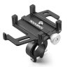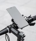 Держатель для смартфона 699-BK от компании Rockbros, производителя аксессуаров для велосипедов, высокого качества. Корпус выполнен из прочного алюминия, фиксация осуществляется за счет силиконовых накладок, которые защищают корпус телефона от царапин и потертостей. Предназначен для размещения телефонов шириной 55-95 мм. В комплекте держатель и шестигранный ключ для его установки и регулировки. Шарнирное крепление позволяет регулировать угол наклона устройства, вращается на 360 градусов, даёт возможность использовать телефон как в горизонтальном, так и в вертикальном режиме. Крепление осуществляется при помощи регулировочного винта, который фиксирует держатель на рулевых трубах диаметром от 22 до 31,8 мм. Весит аксессуар 130 г.