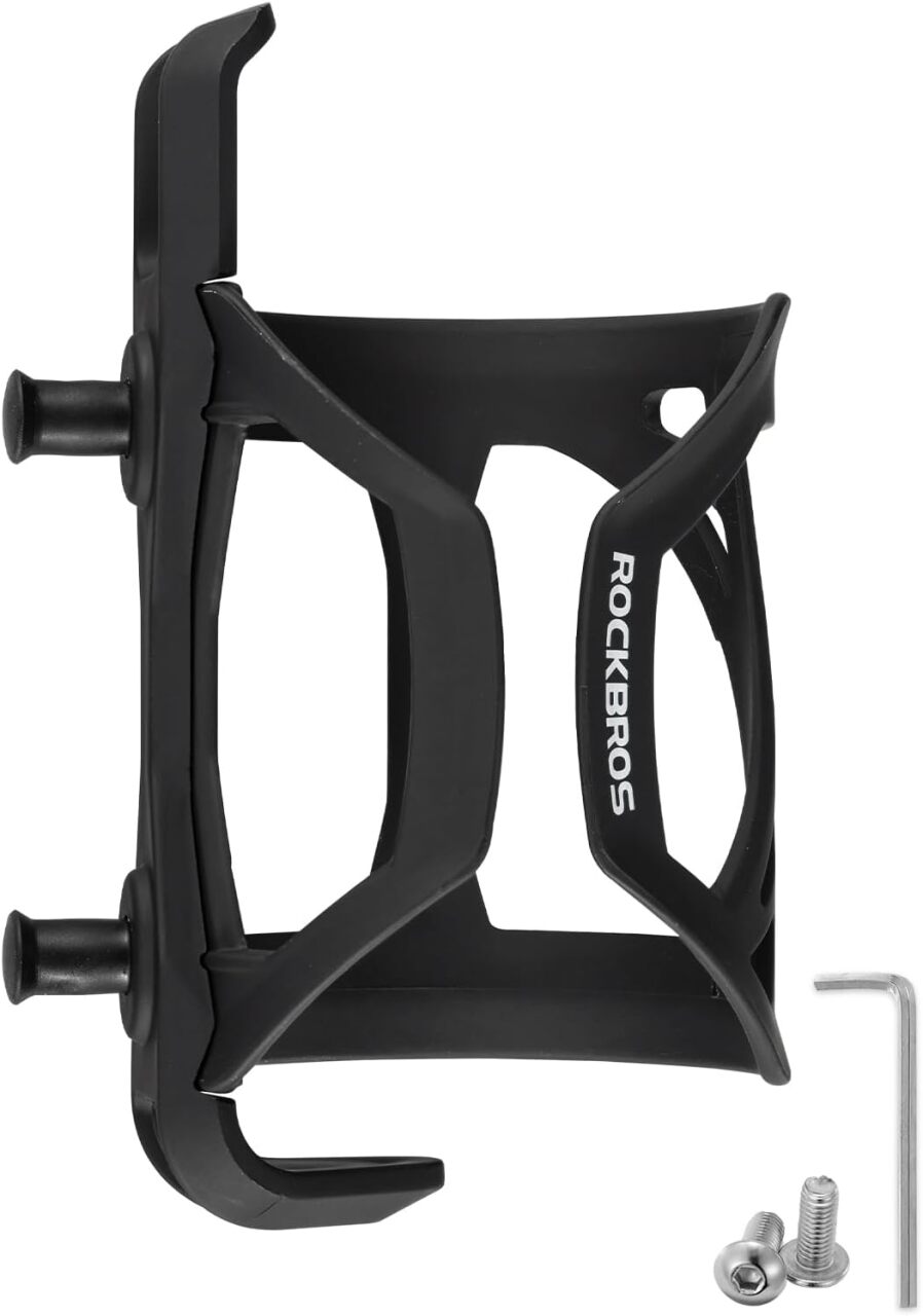 Флягодержатель Rockbros 310010001 - интересная модель из линейки аксессуаров компании. Пластиковый корпус обладает функцией трансформера: фляга устанавливается в держатель сбоку, причем есть возможность сторону загрузки. Благодаря эластичности материала аксессуар достаточно универсален и подойдет ко многим моделям фляг. Оптимально держатель рассчитан для городских, прогулочных и горных велосипедов с большими размерами рамы, а также возможностью вытаскивать и устанавливать обратно флягу вдоль рамы. Можно также отметить очень низкий вес аксессуара - 53 грамма.