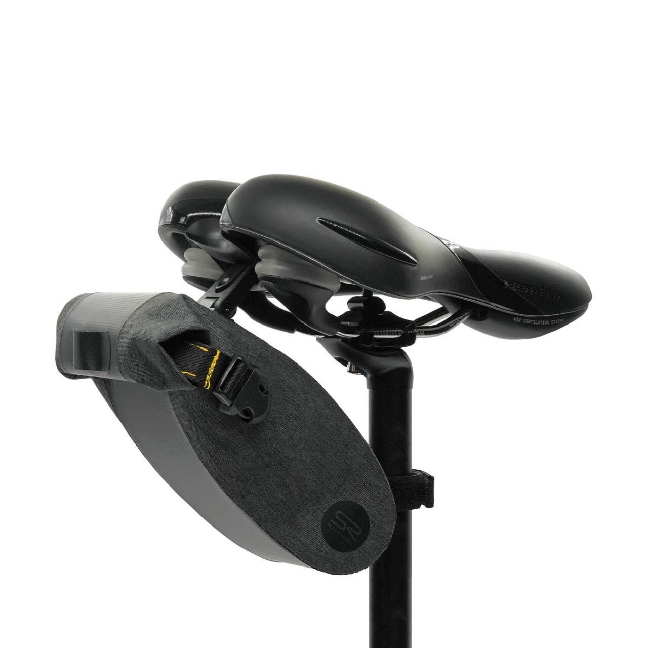 Подседельная сумка Компания Selle Royal представляет подседельную сумку Saddle Bag Large, для производства которой использованы высококачественные материалы и современные технологии. Она состоит из двух отделений, которые закрываются застежкой рулонного типа. С тыльной стороны расположено крепление для габаритного LED-фонаря. Устанавливается на велосипед при помощи двойной велкро стрепа и резинового ремешка, который крепится к подседельному штырю, надежно фиксирующему сумку и предотвращающему повреждение соприкасающихся элементов одежды. Аксессуар идеально подойдет к большинству седел бренда благодаря уникальной системе Integrated Clip System. Сумка имеет размер М, объем 2 литра.