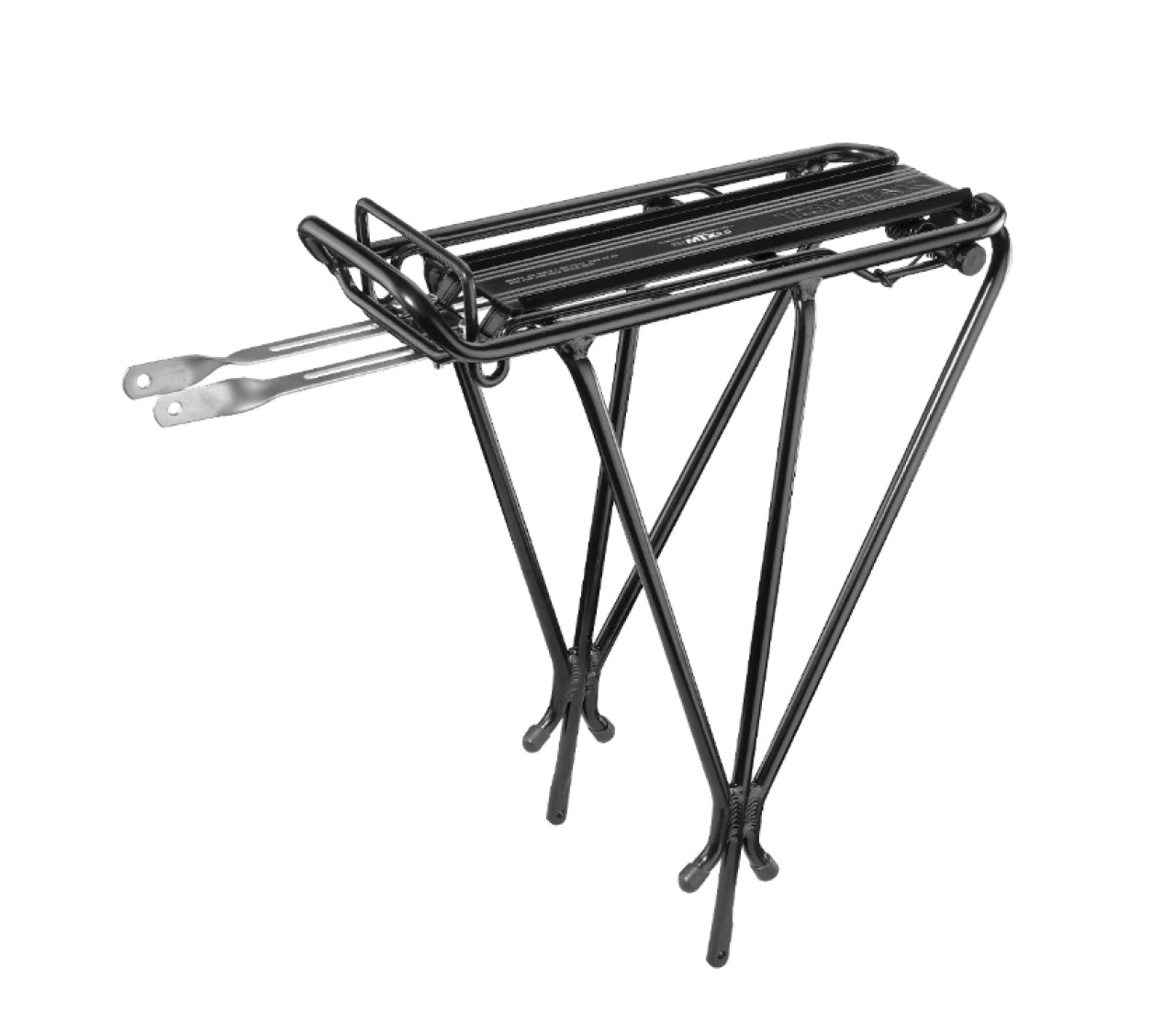 Универсальный, надежный и качественный багажник Explorer Non-Disc от известного американского бренда премиальных аксессуаров Topeak , порадует любого любителя велосипедной езды и путешествий. Багажник выполнен из авиационного алюминия серии 6061 Т6, что делает его не только очень прочным, но и достаточно лёгким. Крепление багажника осуществляется на болтовое крепление к раме и позволяет установить его на велосипеды с диаметром колес от 26" до 29" дюймов, оборудованных только ободными тормозами. Не регулируемые статичные стойки багажника позволяют сохранить жесткость и препятствуют разбалтыванию даже на сложном рельефе. Багажник имеет пружины и фиксатор груза, совместим с любыми моделями вело-сумок и рюкзаков, а также с сумками Topeak MTX TrunkBag, оснащенными системой крепления QuickTrack и вело-корзинами. В задней части багажника имеется дополнительное крепление RedLite для установки светоотражающего элемента или фонаря. Максимальная нагрузка багажника до 26 кг подразумевает также установку детского кресла. Важно: данная модель не рекомендуется производителем для установки на карбоновые рамы.
