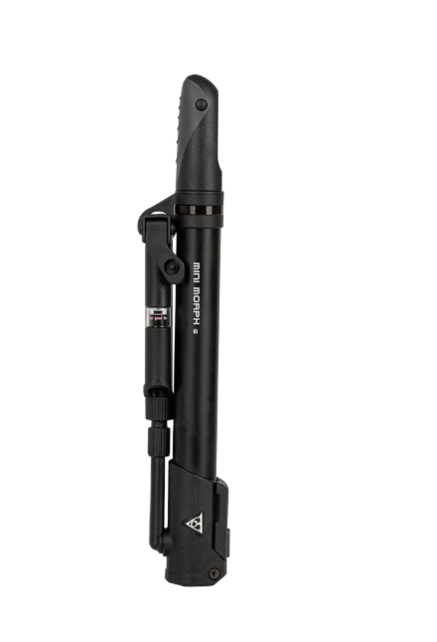 Компактный дорожный насос Topeak Mini Morph G предназначен для быстрой и удобной подкачки колес велосипеда в полевых условиях. Модель оснащена встроенным в шланг компактным манометром. Конструкция включает телескопическую рукоятку и складную педаль для удобного использования. Насос рассчитан на давление до 9.6 бар. Mini Morph G поддерживает все распространенные типы велосипедных ниппелей Presta, Schrader и Dunlop. Пластиковый корпус и алюминиевый поршень объёмом воздушной камеры 52 куб. сантиметра с анодированным покрытием обеспечивают высокую прочность и не перегревается в режиме интенсивной работы. Эластичный шланг предотвращает перегибы и повреждение вентиля. Насос поставляется с пластиковым кронштейном и двумя хомутами для крепления на раме велосипеда.