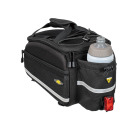 Умеренно жесткая конструкция с формованными боковыми панелями и износостойкой тканью надёжно защищает содержимое от влаги и дорожных нагрузок, сохраняя форму даже при полной загрузке. Внутреннее пространство организовано удобно и практично: основное отделение с перегородкой позволяет упорядочить вещи, а боковые сетчатые карманы обеспечивают быстрый доступ к мелочам. Дополнительный держатель для бутылки сзади — отличный бонус для длительных поездок, когда важно иметь под рукой запас воды.