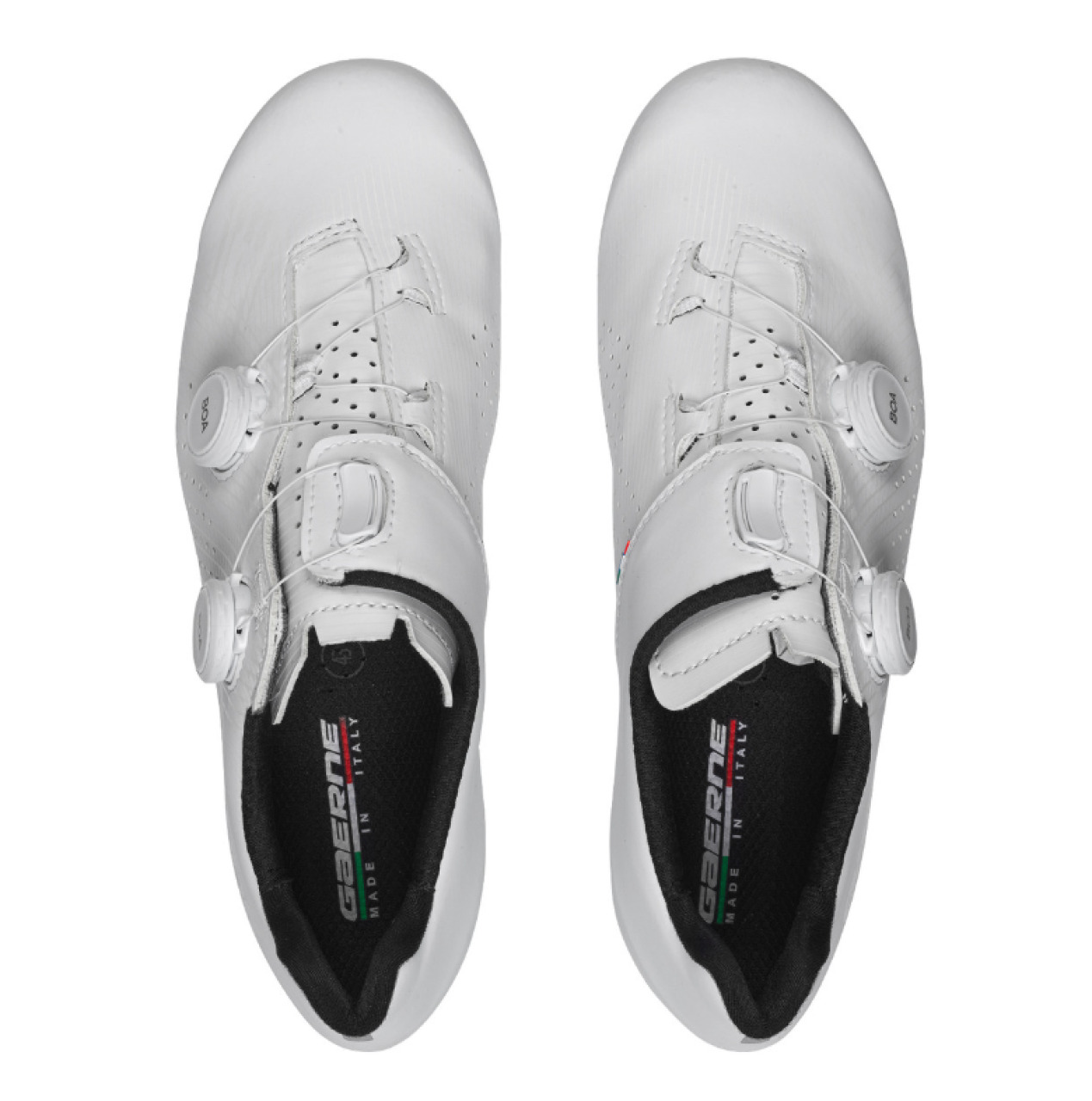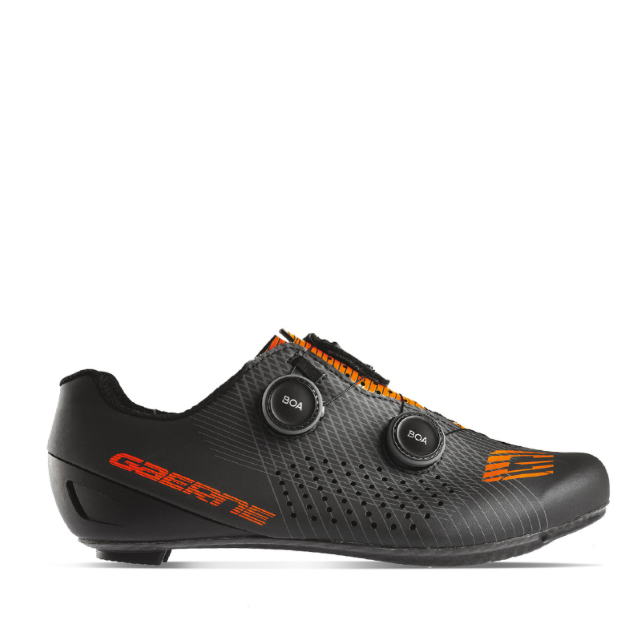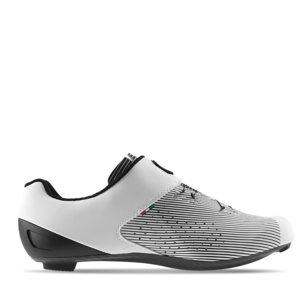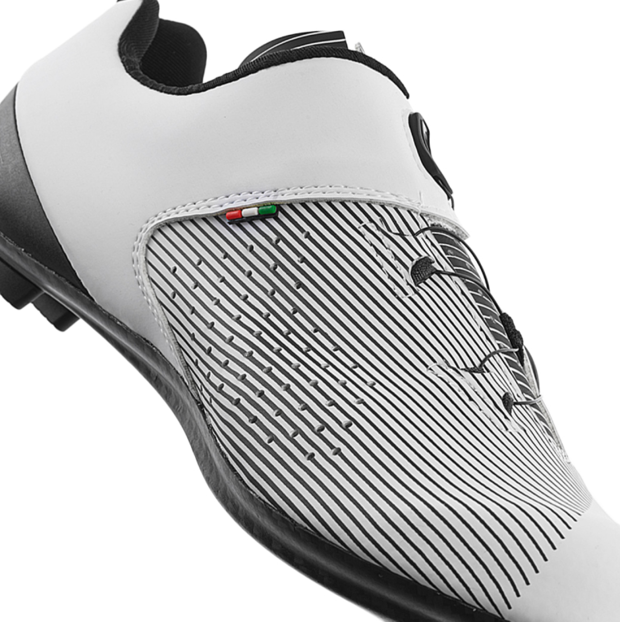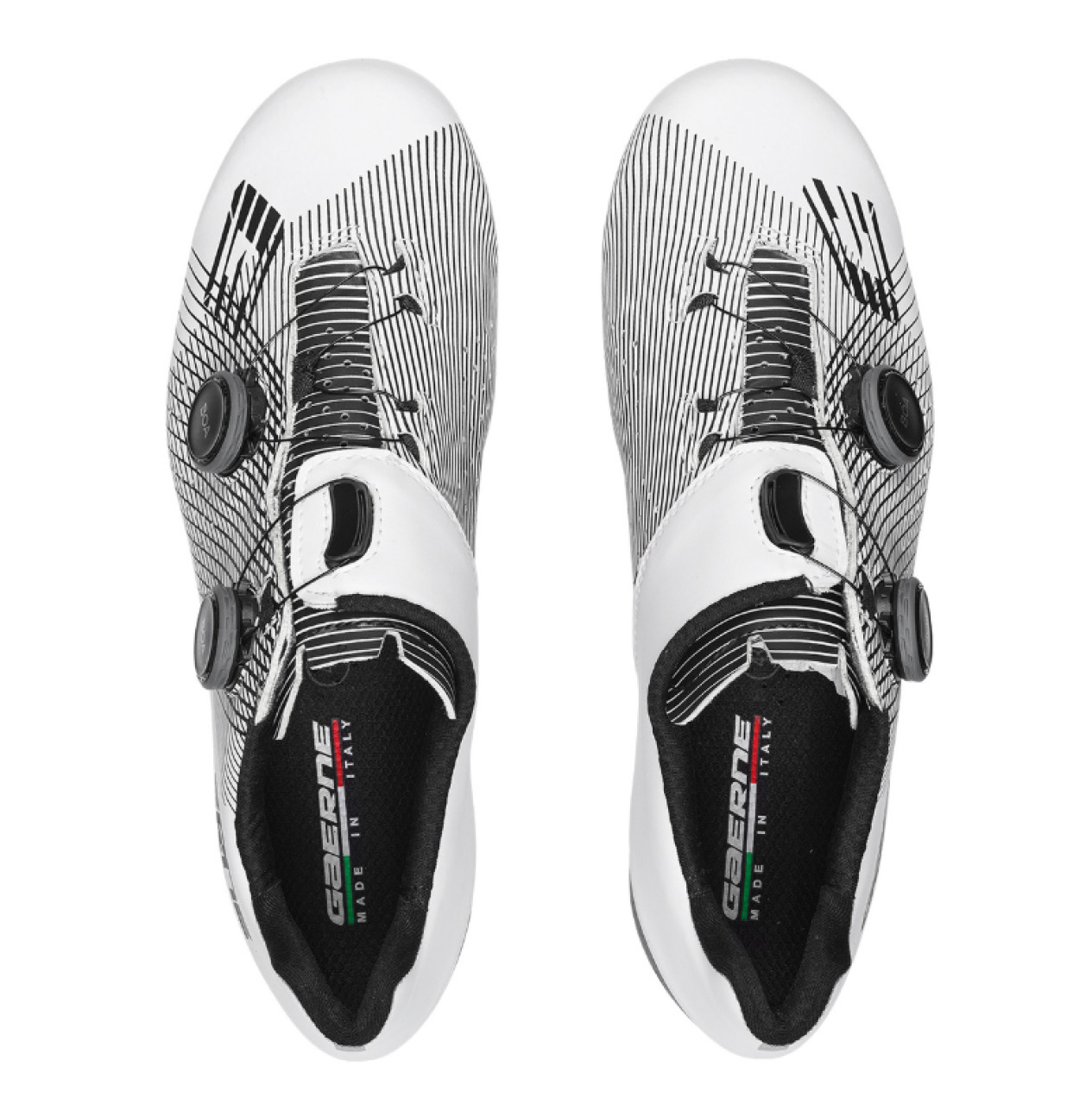 Высокоэффективные туфли G.Fuga Carbon, от итальянской компании Gaerne. Предназначены для профессиональных и полупрофессиональных шоссейных дисциплин, позволяют комфортно и эффективно достигать высоких результатов. Выполнены из микрофибры, оснащены достаточным количеством перфорационных отверстий для идеального обдува стоп. Также обдуву способствует фирменная технология с воздушными каналами, обеспечивающая отличный отвод тепла и сохранение сухости.
