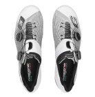 Крайне жесткая и легкая карбоновая подошва, надежно удерживает шип и имеет широкий диапазон регулировки положения, а резиновые вставки на носке и пятке позволят с оптимальном удобством ходит в туфлях по асфальту. Данные туфли станут отличным решением экипировки для профессионального и полупрофессионального шоссейного велоспорта.