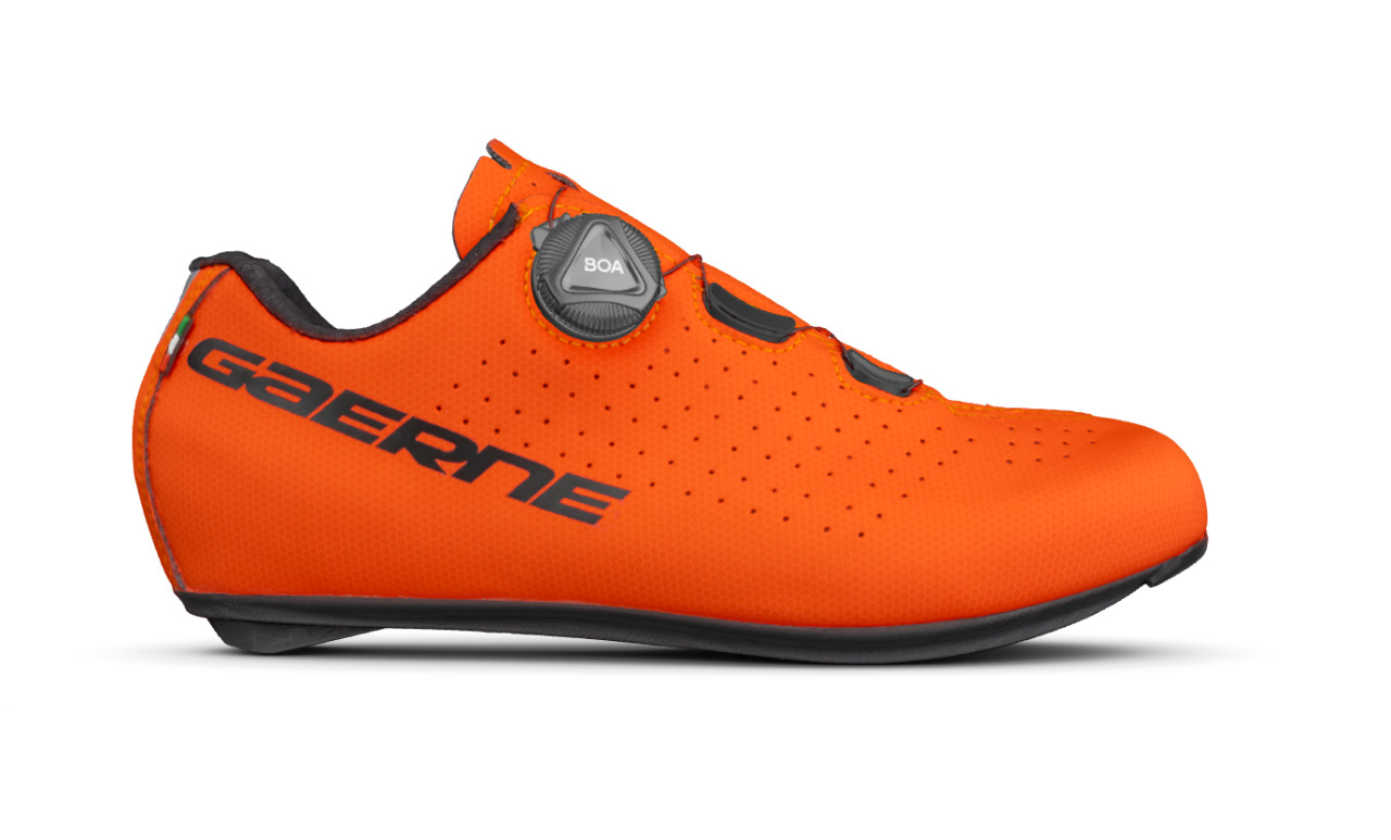 Эффективные и удобные туфли G.Sprint, от итальянской компании Gaerne. Предназначены для начальных и любительских шоссейных дисциплин, позволяют комфортно и легко достигать высоких результатов. Выполнены из микрофибры, оснащены достаточным количеством перфорационных отверстий для идеального обдува стоп. Также обдуву способствует фирменная технология с воздушными каналами, обеспечивающая отличный отвод тепла и сохранение сухости. Система струнной шнуровки, построенная на микро-регулировке независимого ролика BOA L6, вместе с удобным язычком обеспечивают отличную фиксацию обуви на стопе и носке, а также комфорт движения при максимально плотной посадке. Само положение стопы внутри обуви также долго и тщательно разрабатывалось для предельно эффективного переноса всей мощности с ног на педали. Упругая и легкая нейлоновая подошва, надежно удерживает шип и имеет широкий диапазон регулировки положения, а резиновые вставки на носке и пятке позволят с оптимальном удобством ходит в туфлях по асфальту. Данные туфли станут отличным решением экипировки для тех, кто впервые планирует попробовать шоссейные туфли и ожидает большие показатели удобства и эффективности.