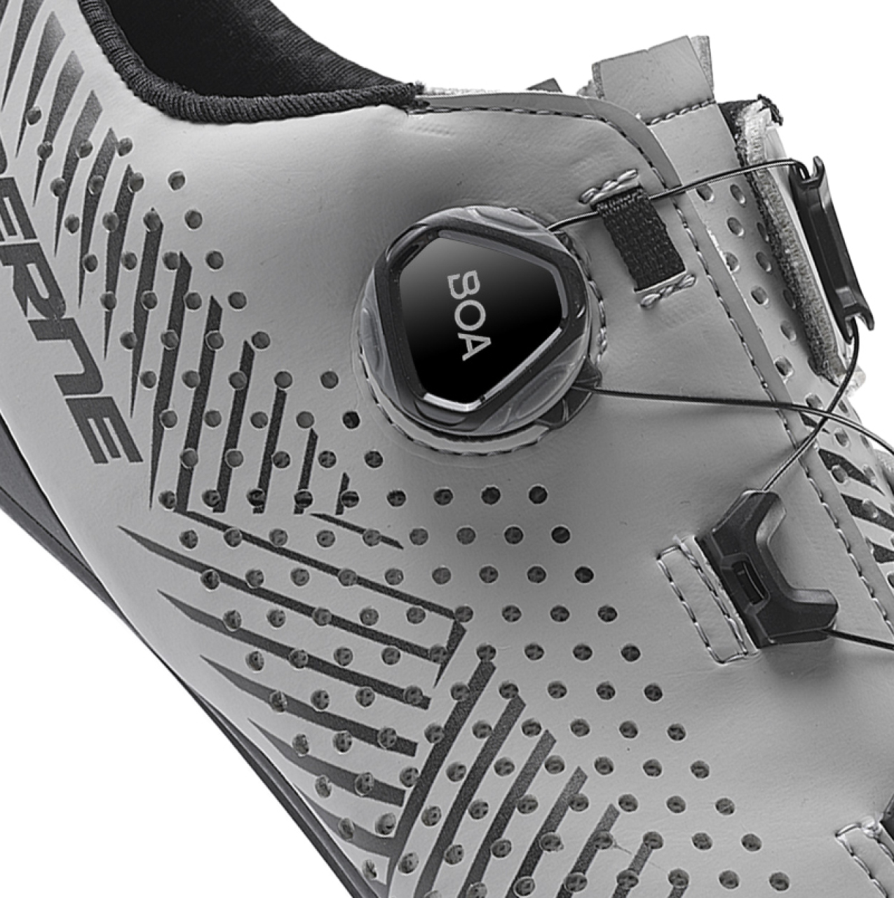 Обувь имеет технологичную систему шнуровки BOA L6, которая уже зарекомендовала себя в велоспорте. Благодаря ей обувь надежно фиксируется на стопе независимо от анатомических особенностей. Язычок без швов, оснащённый амортизирующим слоем, защищает от натирания и обеспечивает эффективную вентиляцию. А противоскользящая пяточная часть, встроенная в конструкцию, обеспечивает надёжное сцепление с поверхностью и устойчивость в любых условиях.