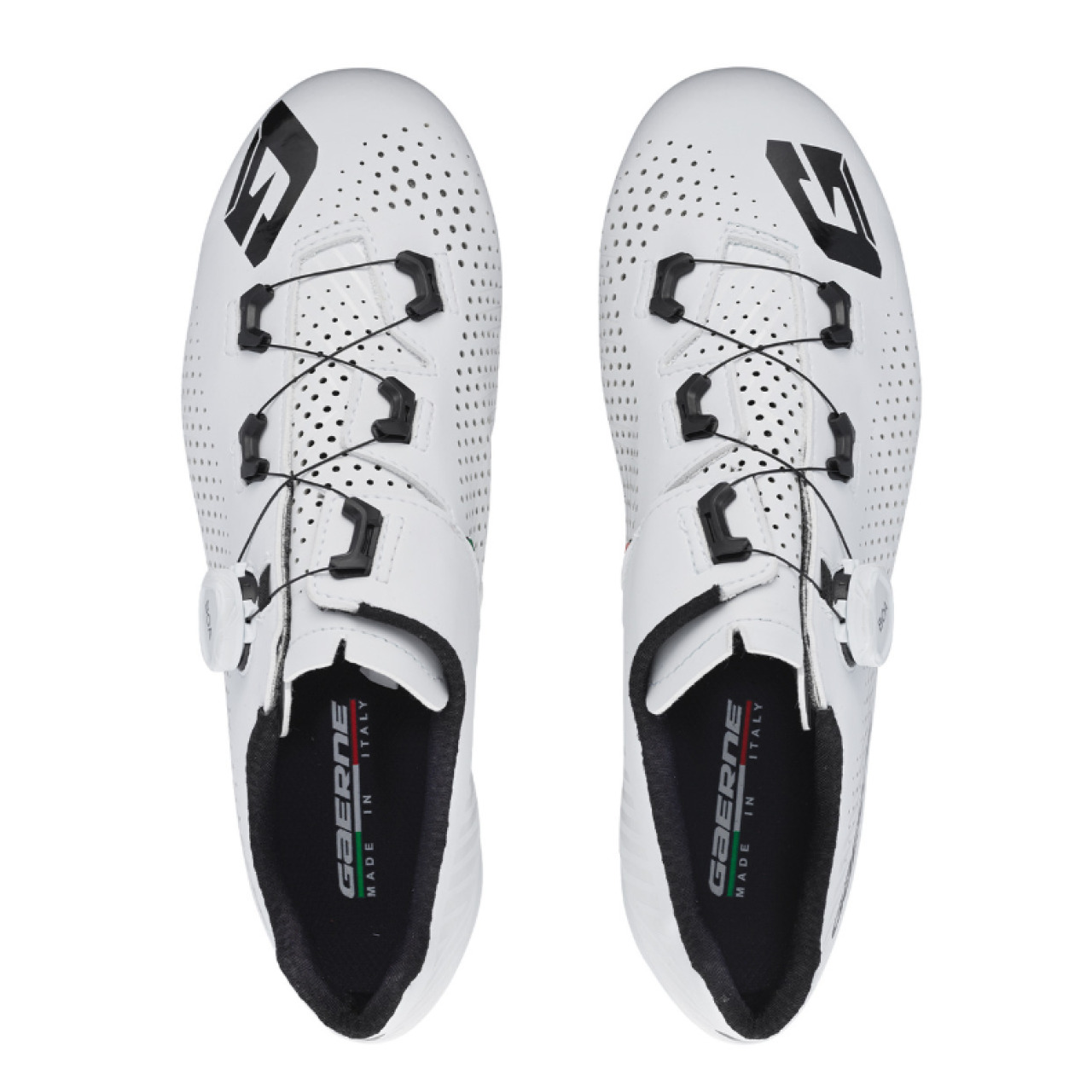 Велотуфли Gaerne G.Tuono разработаны для шоссейных видов велоспорта, и являются хорошим выбором для трековых гонок или триатлона. Благодаря верхнему слою из микрофибры с перфорацией, материал плотно облегает ногу, не вызывая неприятных ощущений, и обеспечивает хорошую вентиляцию. Встроенные в обувь сетчатые элементы поддерживают стопу и обеспечивают устойчивость как во время движения, так и при ходьбе.