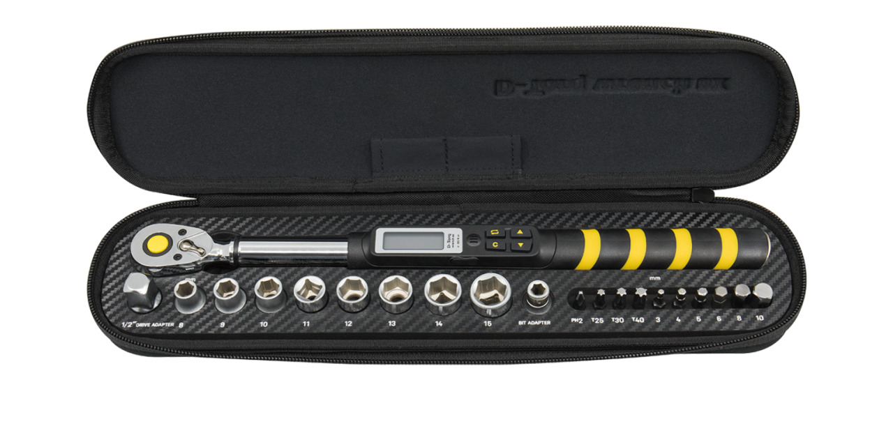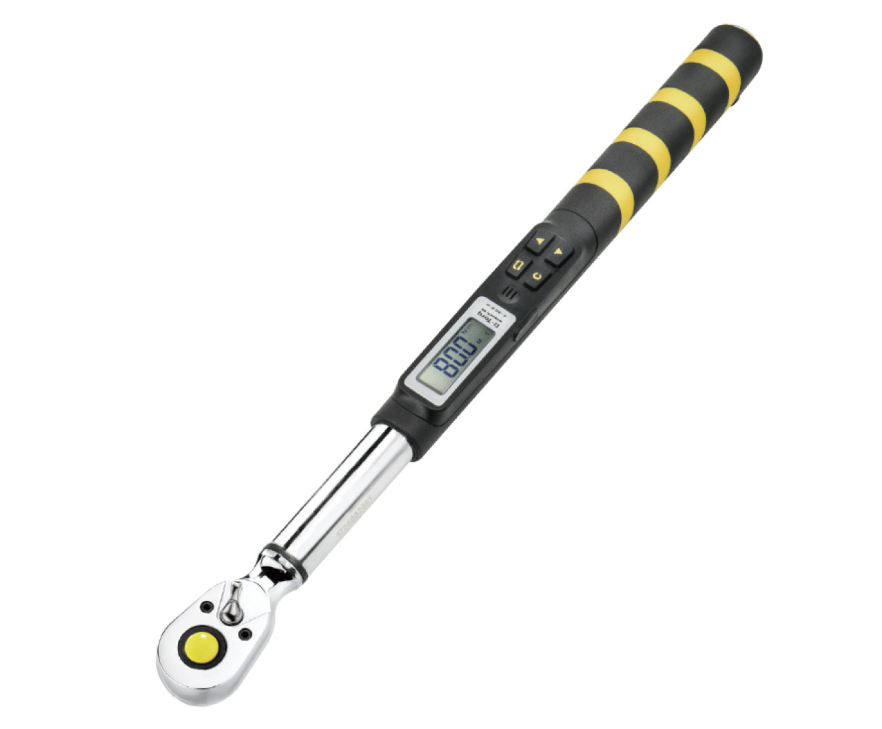 Помимо богатой комплектации, ключ оборудован дисплеем который информирует о достижении или превышении силы затягивания. За стабильную работу дисплея отвечают пальчиковые батарейки стандарта AAA которые идут в комплекте. Время работы составляет до 48 часов. Крутящий момент данного ключа составляет от 4 до 80 Нм.