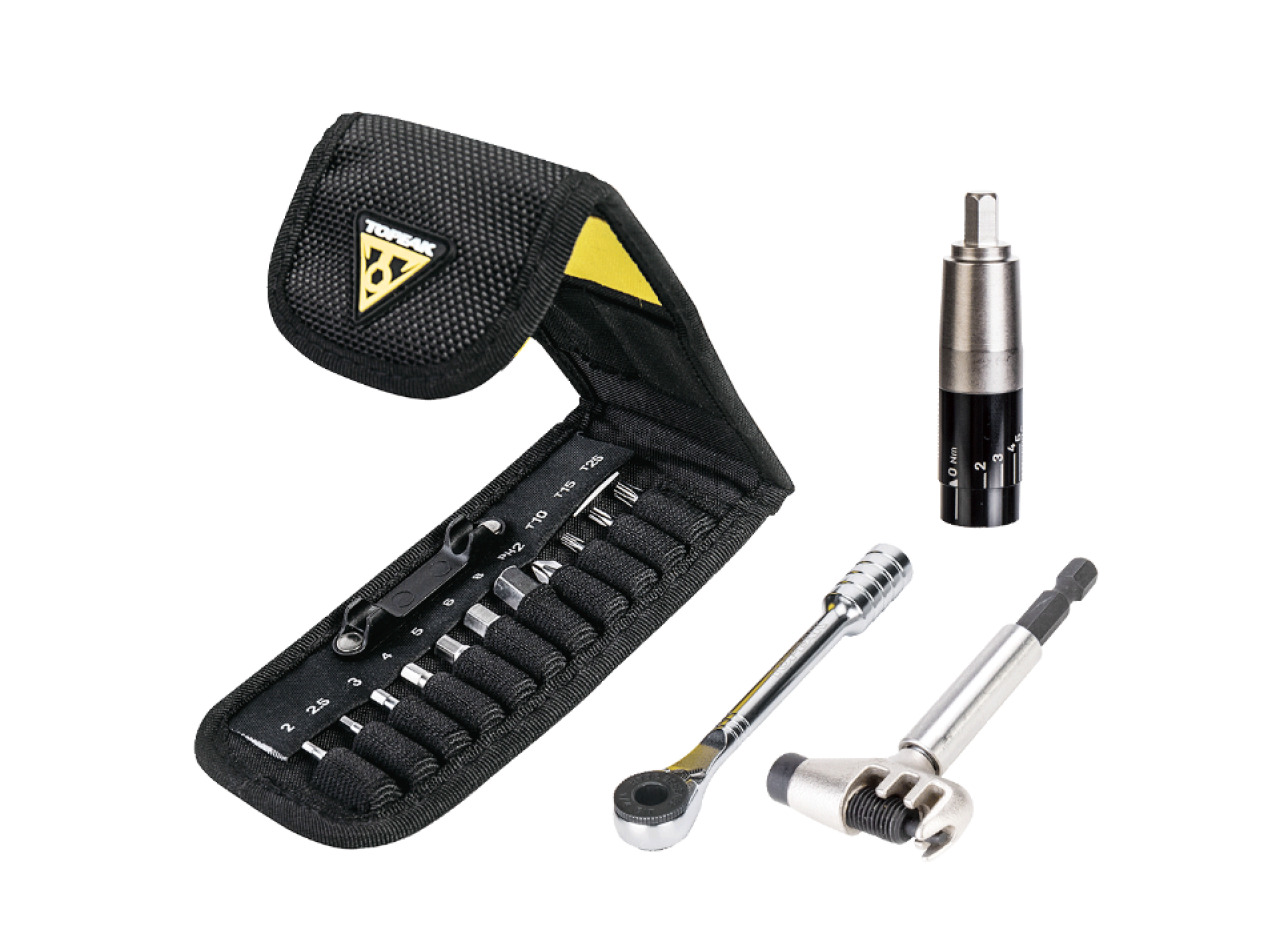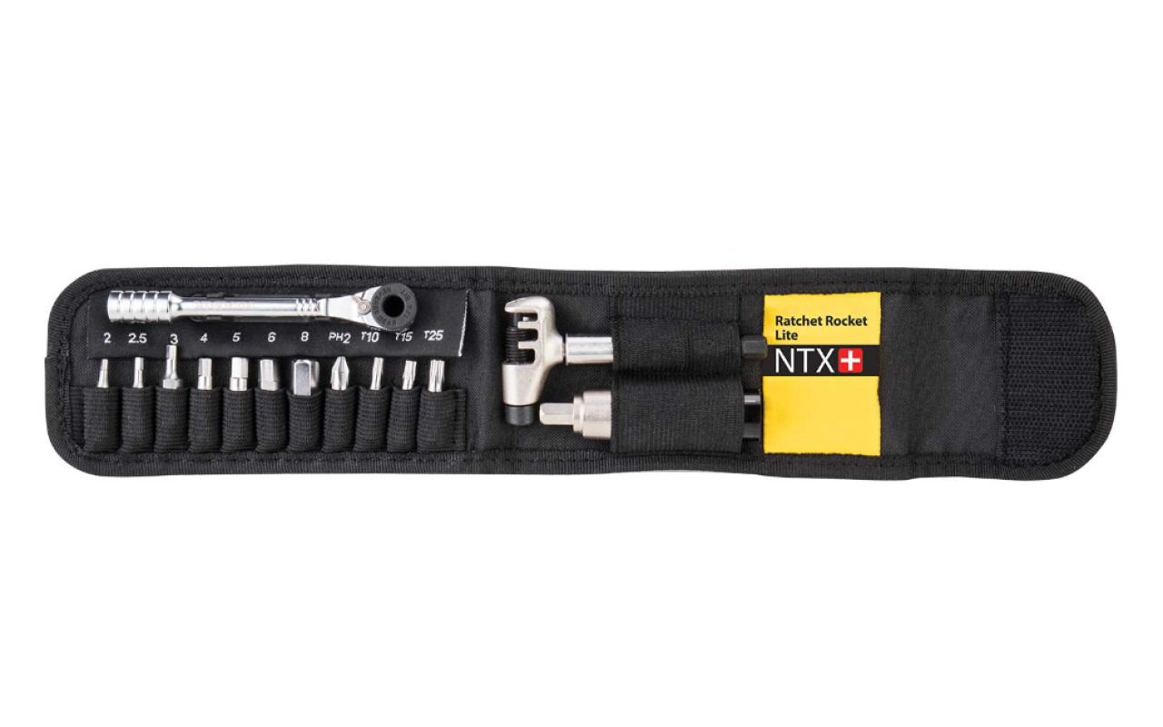 Набор инструментов Topeak Ratchet Rocket Lite NTX+и на 19 функций - современное и удобное решение для любого райдера и веломеханика. Этот комплект представляет собой совокупность максимально необходимых инструментов, а также динамометрическую рукоятку с диапазоном усилия от 2 до 6 Нм, чего отлично будет хватать для оперативного обслуживания велосипеда в дороге. Набор включает 19 инструментов, шестигранные биты от 2 до 8 мм, биты стандарта Torx в размерах T10, T15 и T25, крестовую отвертку, а также выжимку цепи для 1-12 скоростных моделей. Держатель бит в данной модели магнитный, что более удобно в использовании. В комплектации присутствует защитный футляр для аккуратного хранения.