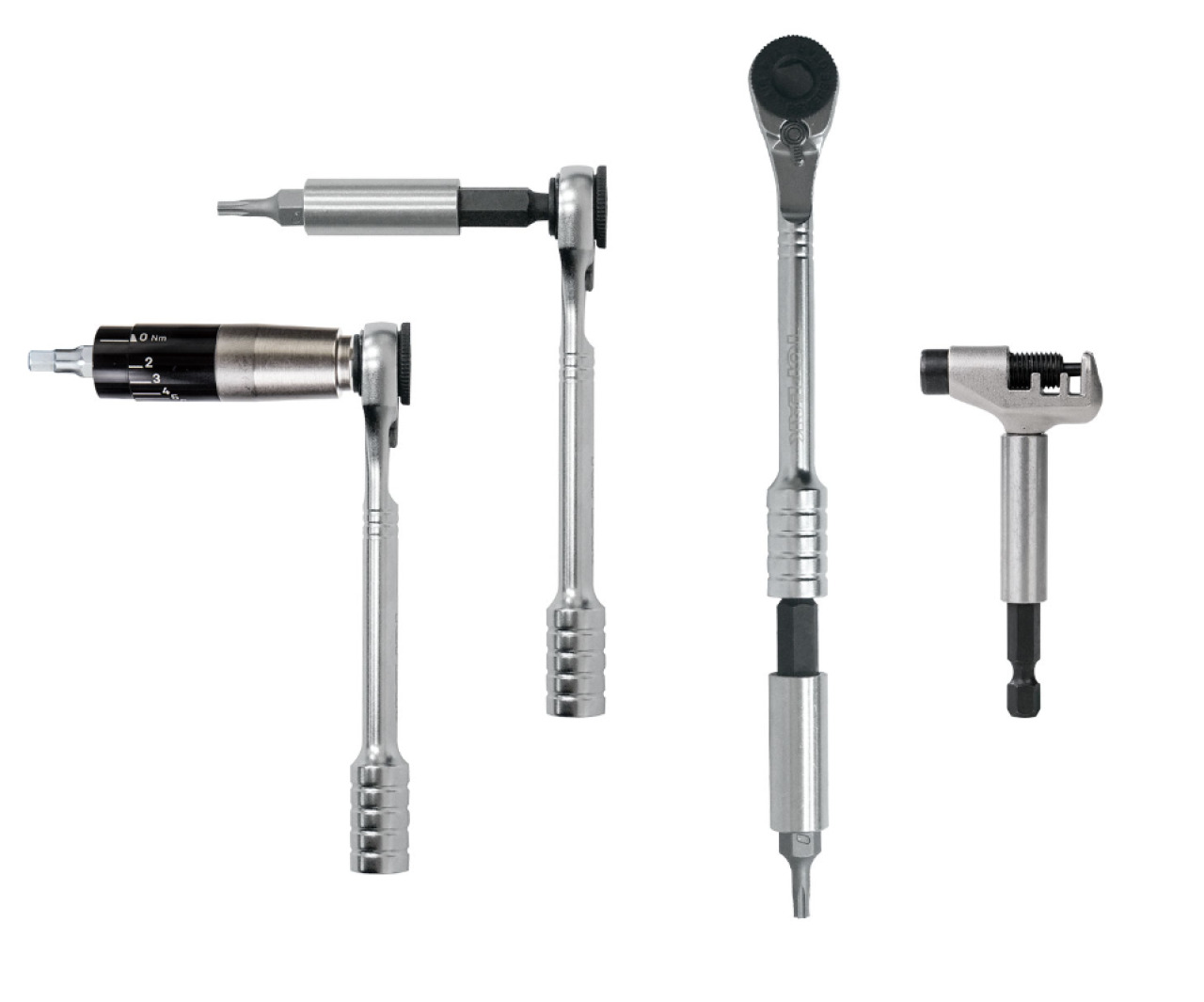 Шестигранные биты 2 / 2.5 / 3 / 4 / 5 / 6 / 8 мм, Torx-ключи T10 / T15 / T25, выжимка цепи, крестовая отвертка PH2