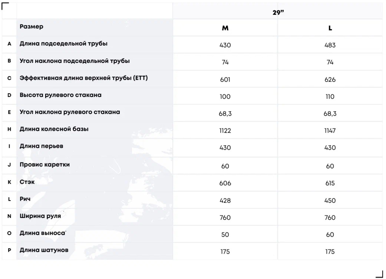 • Колеса: только 29", для втулок Boost стандарта 148х12 мм, покрышки с шириной до 2.4"