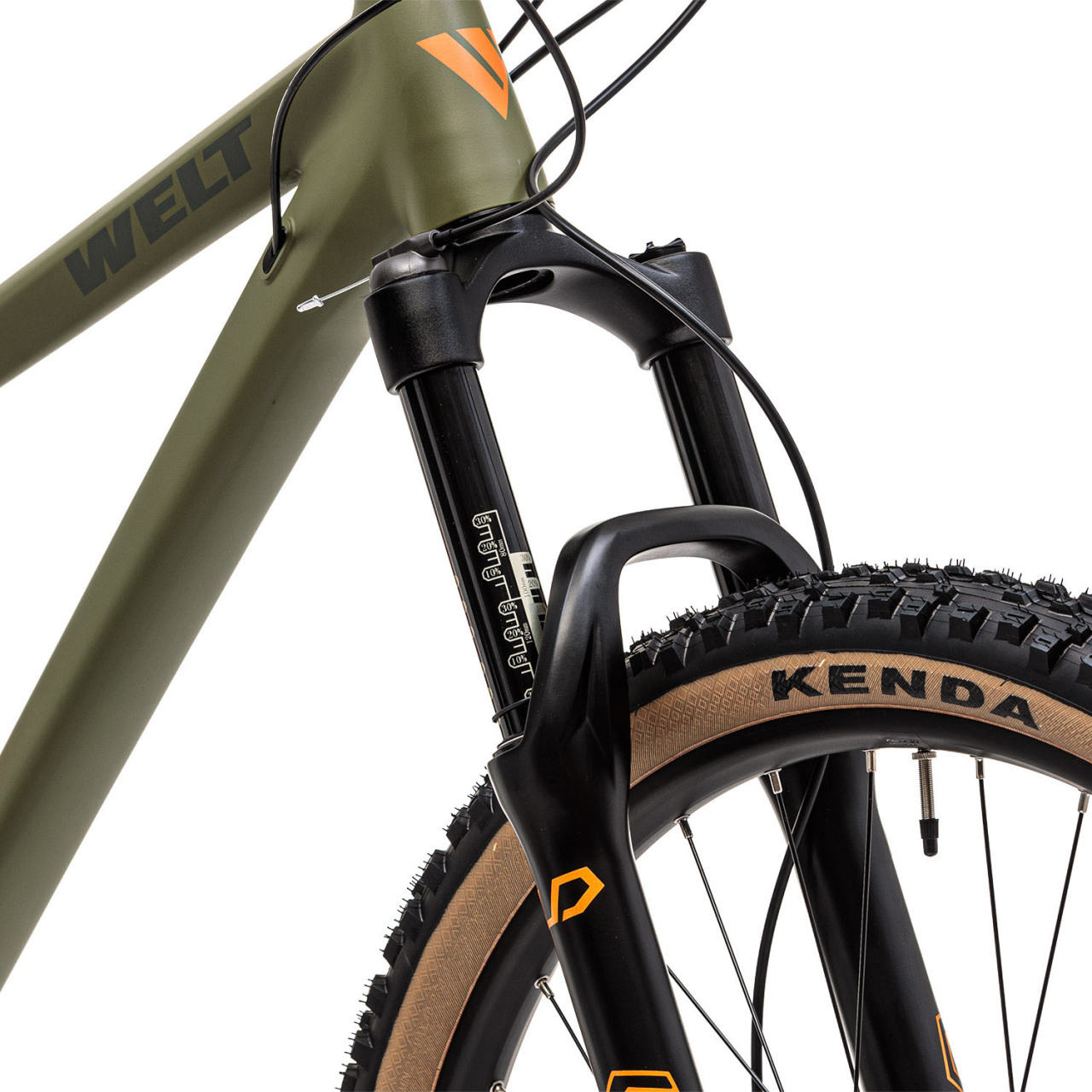 Продуманный хардтейл Edge 2.0 от известного производителя Welt, станет отличным спутником с широкими возможностями как для любительского катания, так и тренировок. Алюминиевая рама из сплава 6061 имеет Trail геометрию, предоставит уверенную устойчивость и баланс развесовки. Для высокой эффективности на трассах, велосипед оснащен воздушной амортизационной вилкой от Uding UD-34 с ходом 140 мм. Широкий руль с загибом 9°, дроппер и цепкая резина обеспечат высокую уверенность на трассе. Втулки на Boost осях и промышленных подшипниках, что в свою очередь даст серьезное преимущество в надежности и накате. Стильный дизайн и качественная сборка обеспечат хорошими показателями на протяжении продолжительного времени.
